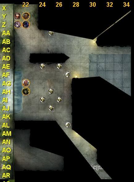 Daituk and Truckbus power their way through the waterfall to find a group of four playing cards on the stone floor of the cavern. The jaw of the kobold facing them drops, and then he throws down his cards and starts shouting. The rest of the players are rather offended until they spot the reason for his destruction of their good time. The entire group scrambles about, grabbing for weapons and shouting warnings. Chaos reigns in the cavern for a few seconds. Surprise round! Everyone gets one standard action, and then the rotation begins as normal. Surprised opponents grant Combat Advantage. Daituk 23, Skirmishers 21 (surprised), Truckbus 21, Thia 19, minions 18 (surprised), Prime 12, Zeno 7I was speaking idiomatically.